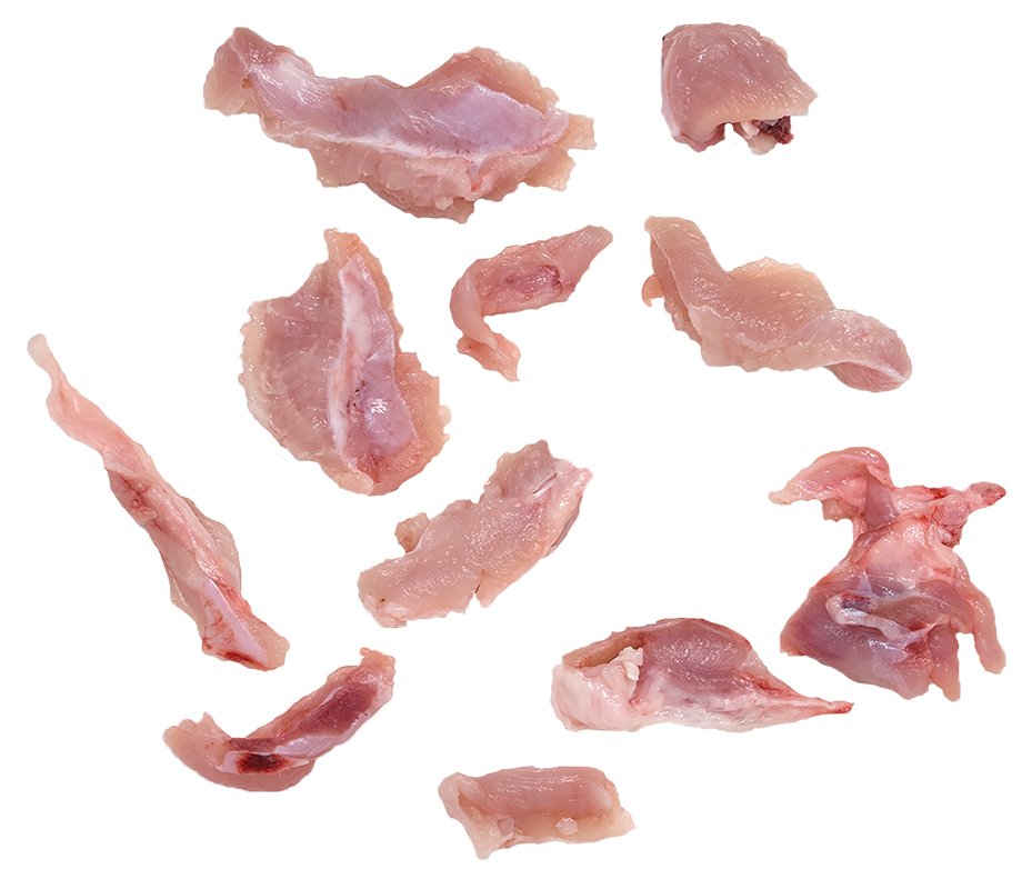 • Carne branca do peru, com um pouco de gordura, obtida a partir do chanfro do peito.